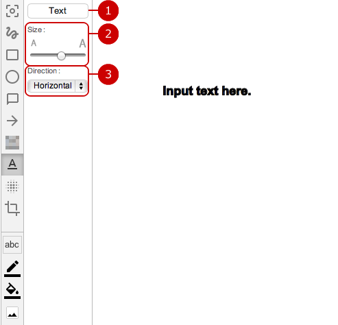 Drag the mouse on the canvas to draw a text balloon and text in any size.