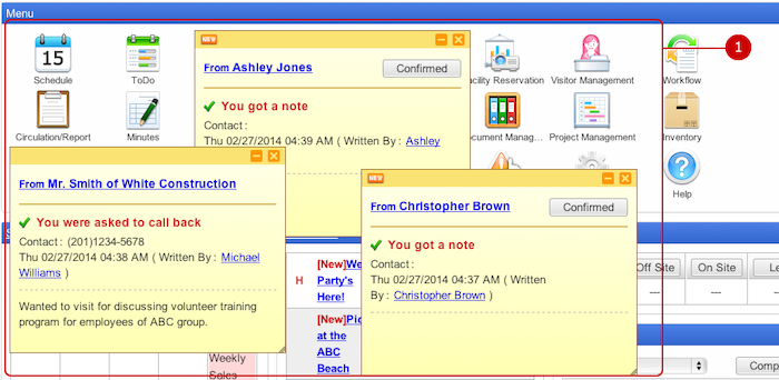 When you press Sticky Note Message button, Whereabouts messages sent to you are displayed in the screen.